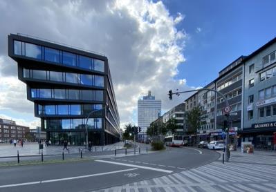 Das Ergebnis an der Mercatorstraße, wo einst Platanen Schatten spendeten, zeigt der Blick den postmodernen Bürokomplex entlang, dem, ob wir ihn brauchten oder nicht, die Platanen aber nicht einmal im Weg standen. Sie mussten vielmehr – wie ihre Verwandten an der Wedauer Straße heute – dem Straßenausbau weichen, denn sie passten den Planern so gar nicht in ihr neustädtisches Sehnsuchtsbild aus Stein, Glas und Stahl und hätten zudem den Blick auf die beiden Eingänge MERCATOR ONE NORTH und MERCATOR ONE SOUTH versperrt.